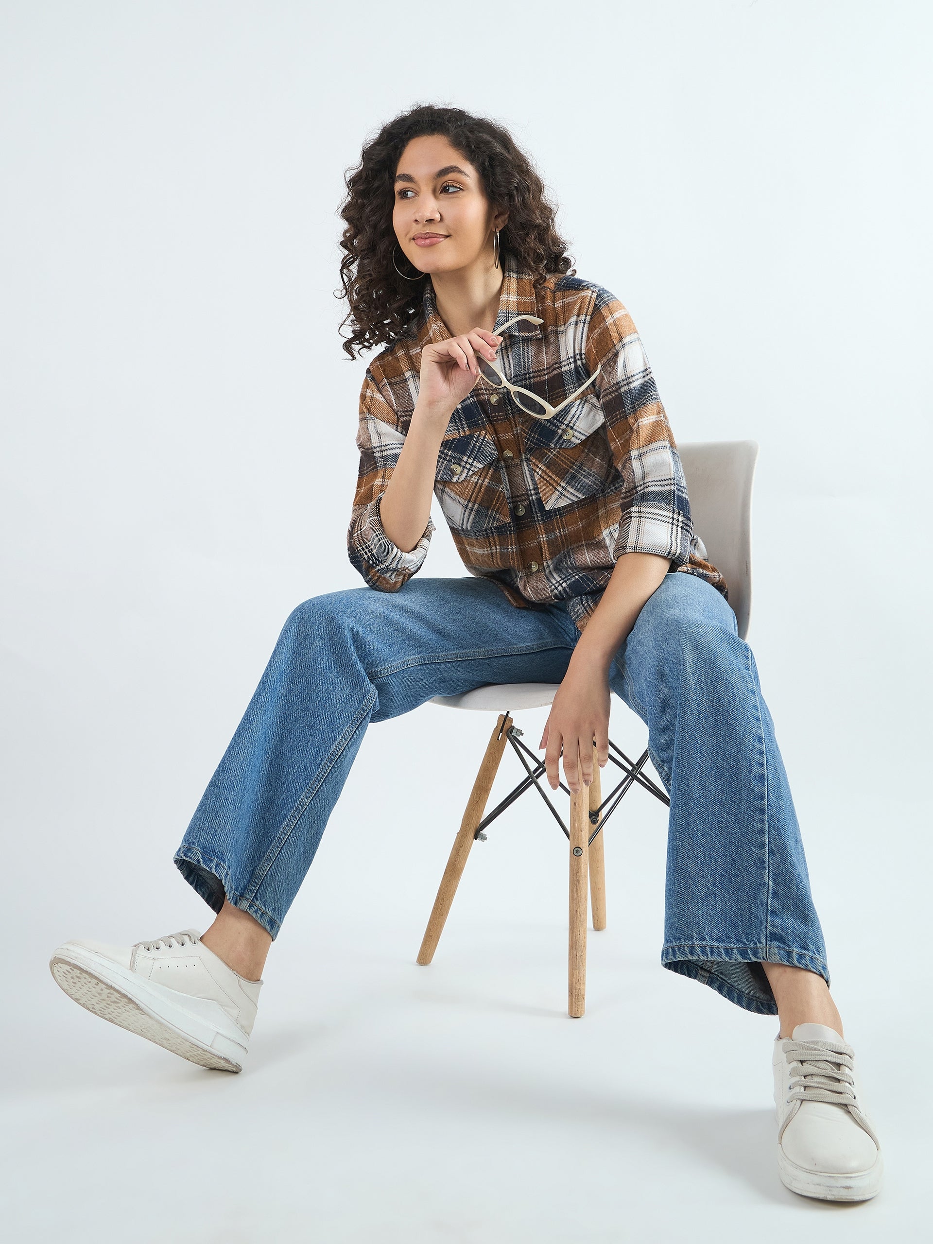 Brown other checks checked opaque Casual shirt ,has a spread collar, button placket, 2 flap pocket, long regular sleeves, curved hem