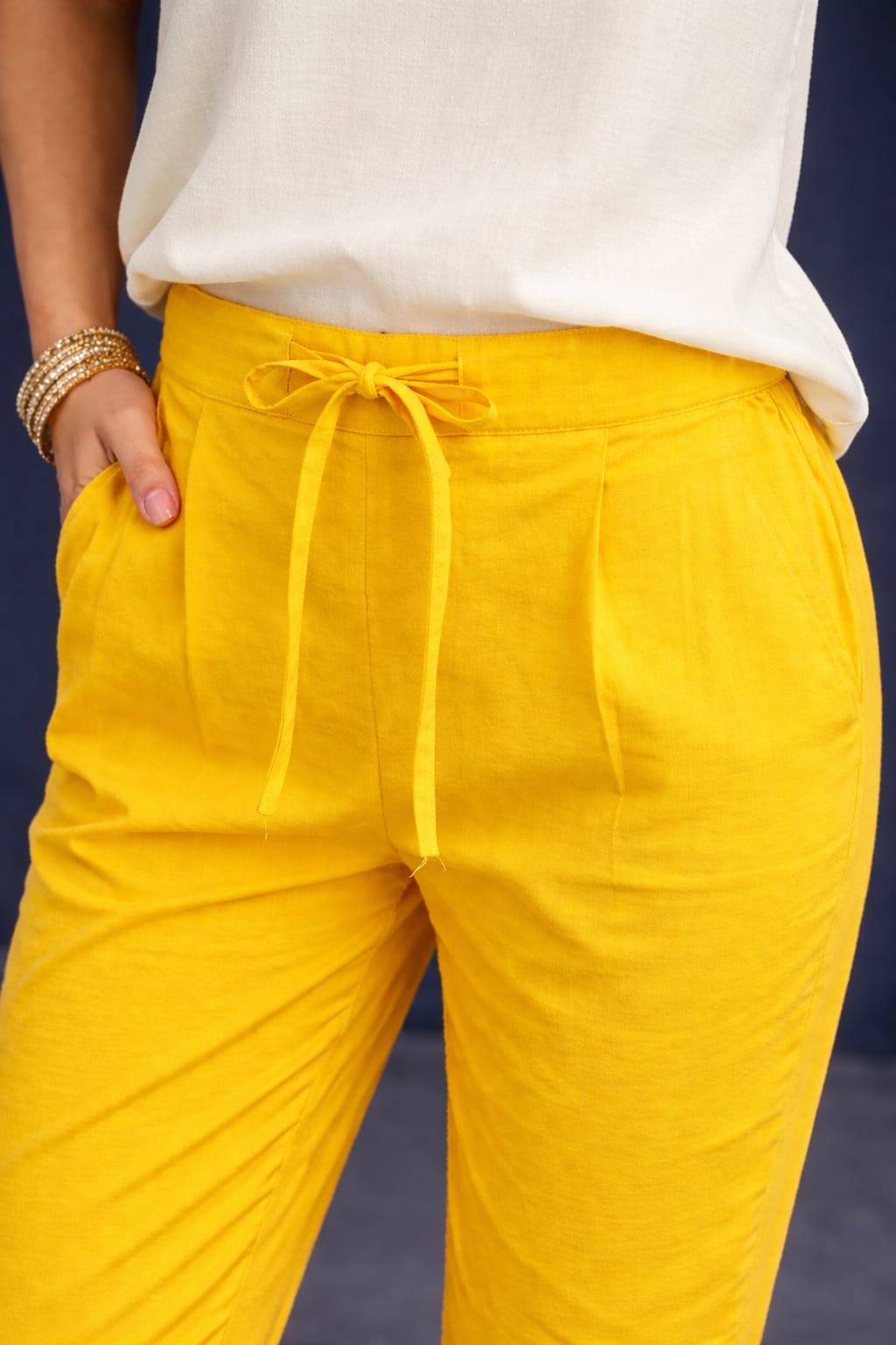 Elevate your everyday style with this yellow straight kurta set.Featuring a beautifully pintucked yoke, wooden button detailing and a sleek straight silhouette.Paired with matching straight pants featuring an elasticated waist and side 2 pockets. |